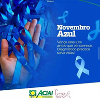 Neste Novembro Azul, reforçamos a necessidade para que os homens se livrem dos preconceitos e cuidessem da saúde! Iniciamos o mês de prevenção ao câncer de próstata incentivando os homens e a população a se prevenirem dessa doença e como em todos os anos disponibilizamos para nossos associados o lacinho azul a preço de custo. A ACIAI-CDL e CMEI abraçam essa causa e estão sempre juntos na luta contra o câncer.